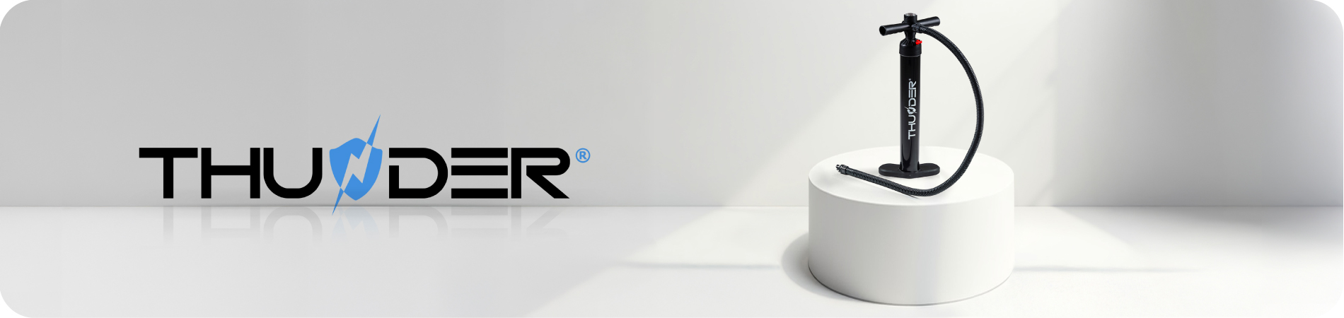 A nossa bomba THUNDER®️ é durável, robusto e fácil de utilizar. Fornece a quantidade certa de potência de bombagem para encher a sua prancha de SUP de forma rápida e eficiente. Permite-lhe preparar rapidamente a sua prancha de SUP para remar na água e desfrutar da atividade com todo o conforto.